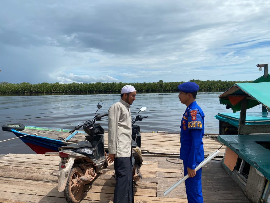 KP VI-10-15 Natai Kuini melaksanakan kegiatan penyampaian pesan kamtibmas kepada motoris penyebrangan tradisional yang sedang beraktivitas di Sungai NatainKuini. Kegiatan ini bertujuan untuk meningkatkan kesadaran masyarakat akan pentingnya menjaga keamanan, baik di lingkungan sekitar maupun saat berada di atas kapal.