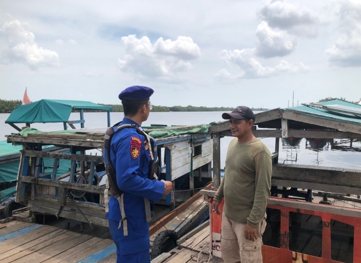 KP VI-10-15 Natai Kuini melaksanakan kegiatan penyampaian pesan kamtibmas kepada motoris penyebrangan tradisional yang sedang beraktivitas di Sungai NatainKuini. Kegiatan ini bertujuan untuk meningkatkan kesadaran masyarakat akan pentingnya menjaga keamanan, baik di lingkungan sekitar maupun saat berada di atas kapal.