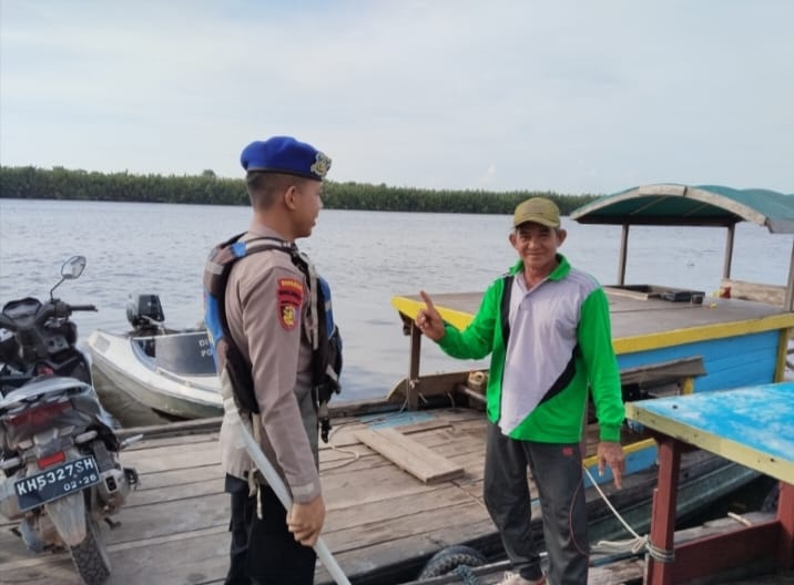 KP VI-10-15 Natai Kuini melaksanakan kegiatan penyampaian pesan kamtibmas kepada motoris penyebrangan tradisional yang sedang beraktivitas di Sungai NatainKuini. Kegiatan ini bertujuan untuk meningkatkan kesadaran masyarakat akan pentingnya menjaga keamanan, baik di lingkungan sekitar maupun saat berada di atas kapal.