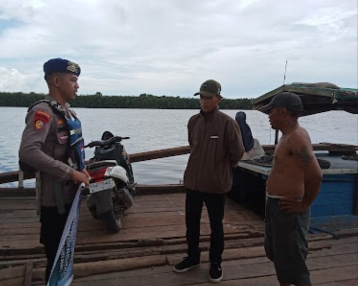 KP VI-10-15 Natai Kuini melaksanakan kegiatan penyampaian pesan kamtibmas kepada motoris penyebrangan tradisional yang sedang beraktivitas di Sungai NatainKuini. Kegiatan ini bertujuan untuk meningkatkan kesadaran masyarakat akan pentingnya menjaga keamanan, baik di lingkungan sekitar maupun saat berada di atas kapal.