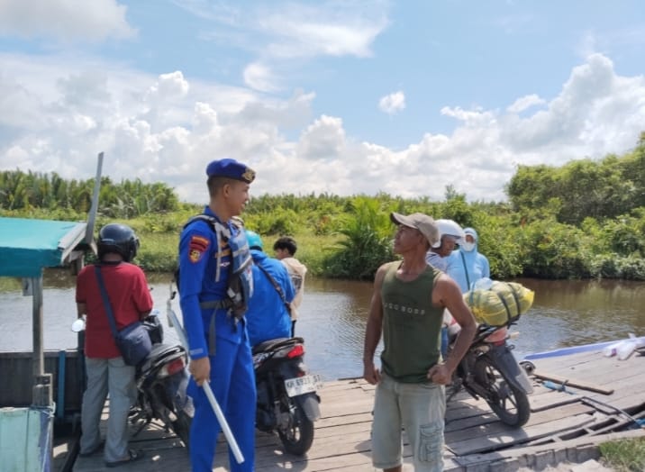KP VI-10-15 Natai Kuini melaksanakan kegiatan penyampaian pesan kamtibmas kepada motoris penyebrangan tradisional yang sedang beraktivitas di Sungai NatainKuini. Kegiatan ini bertujuan untuk meningkatkan kesadaran masyarakat akan pentingnya menjaga keamanan, baik di lingkungan sekitar maupun saat berada di atas kapal.