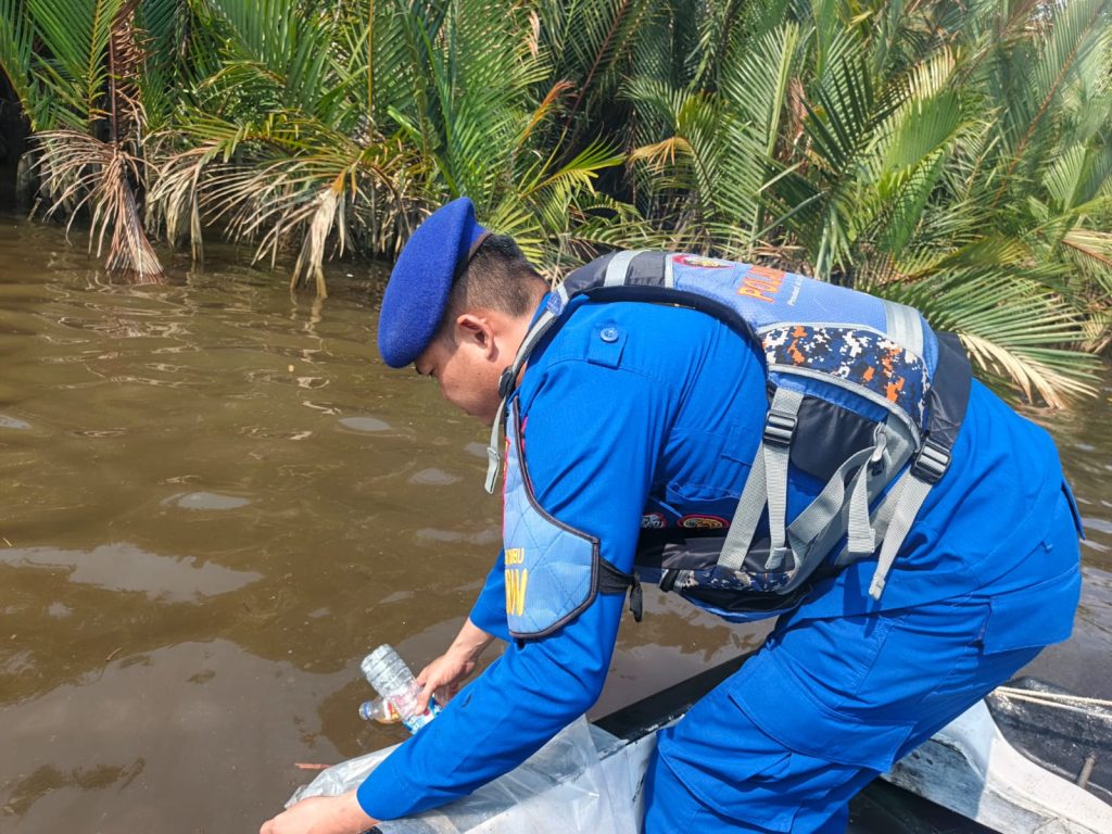 BerandaBeritaPOLISI RW MEMBERSIHKAN SAMPAH SUNGAI DAN LAUT DI PERAIRAN MUARA KUBU