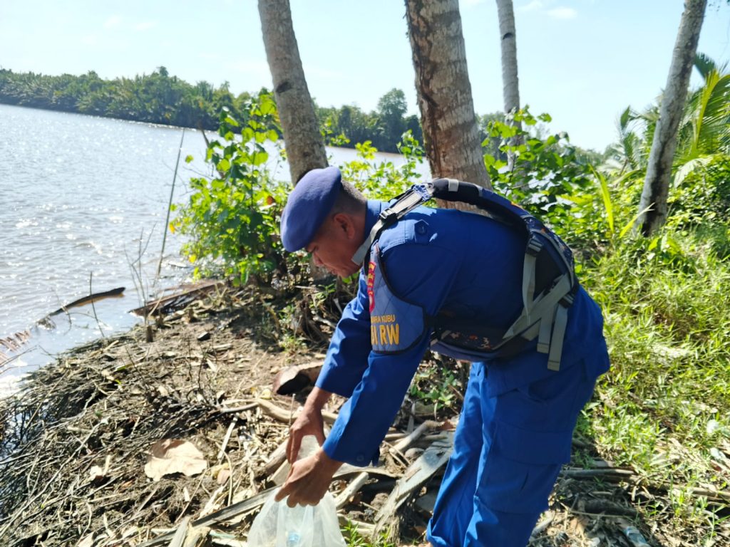 POLISI RW MEMBERSIHKAN SAMPAH SUNGAI DAN LAUT DI PERAIRAN MUARA KUBU