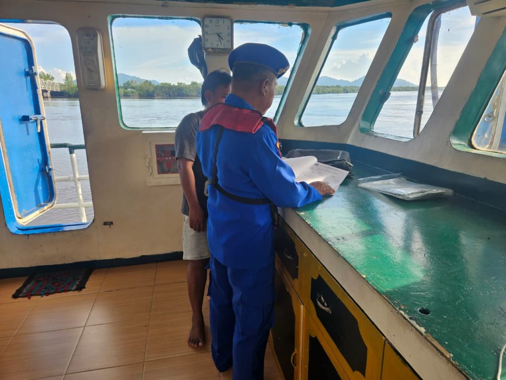 Dalam rangka menertibkan surat dokumen kapal yang akan berlayar personil KP.VI-1010 melakukan pemeriksaan secara rutin di perairan Sungai teluk melano selain penertiban surat surat kapal personil sekaligus ajang silaturahmi antara kepolisian perairan dengan nakhoda kapal beserta anak buah kapal, situasi aman.