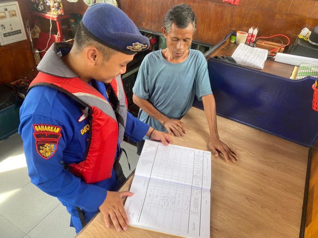 Dalam rangka menertibkan surat dokumen kapal yang akan berlayar personil KP.VI-1010 melakukan pemeriksaan secara rutin di perairan Sungai teluk melano selain penertiban surat surat kapal personil sekaligus ajang silaturahmi antara kepolisian perairan dengan nakhoda kapal beserta anak buah kapal, situasi aman.