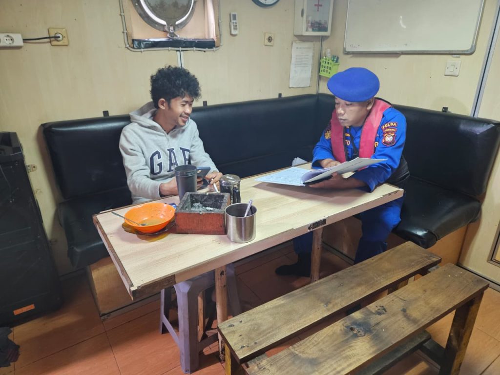 Dalam rangka menertibkan surat dokumen kapal yang akan berlayar personil KP.VI-1010 melakukan pemeriksaan secara rutin di perairan Sungai teluk melano selain penertiban surat surat kapal personil sekaligus ajang silaturahmi antara kepolisian perairan dengan nakhoda kapal beserta anak buah kapal, situasi aman.